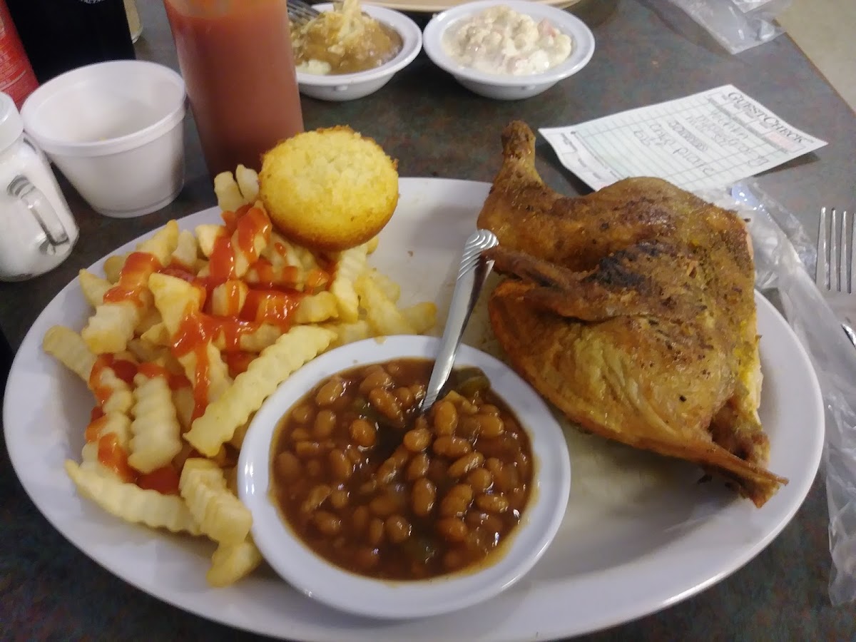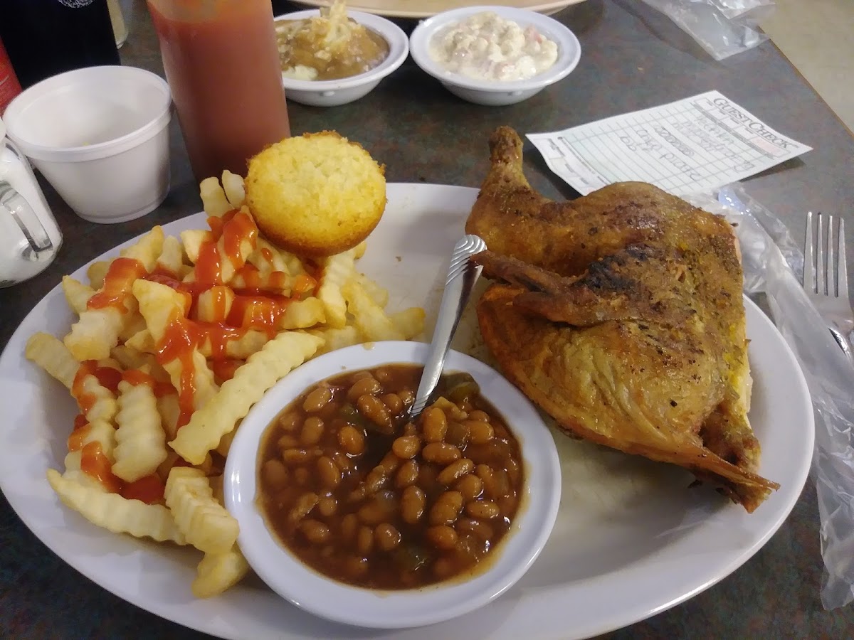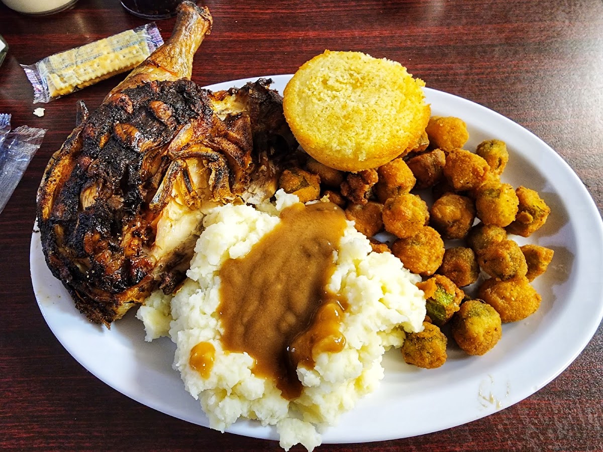 Great BBQ cuisine for a small local restaurant. The waitress was pleasant. I ordered a smoked chicken half with mashed potatoes with gravy and fried okra. Classic cuisine for the southern homestyle vibe.